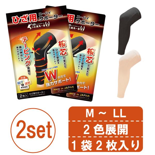 膝サポーター ひざ ふくらはぎ サポーター 2袋セット 1袋 2枚入り 左右 男女 兼用 薄手 日本製 ぐっと支え〜るW
