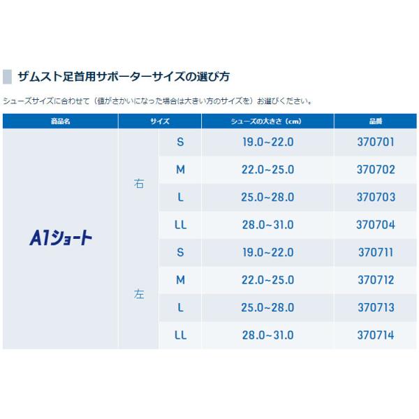 【1点までメール便送料無料】ザムスト A1 ショート 足首用サポーターミドルサポート ZAMST 返品不可