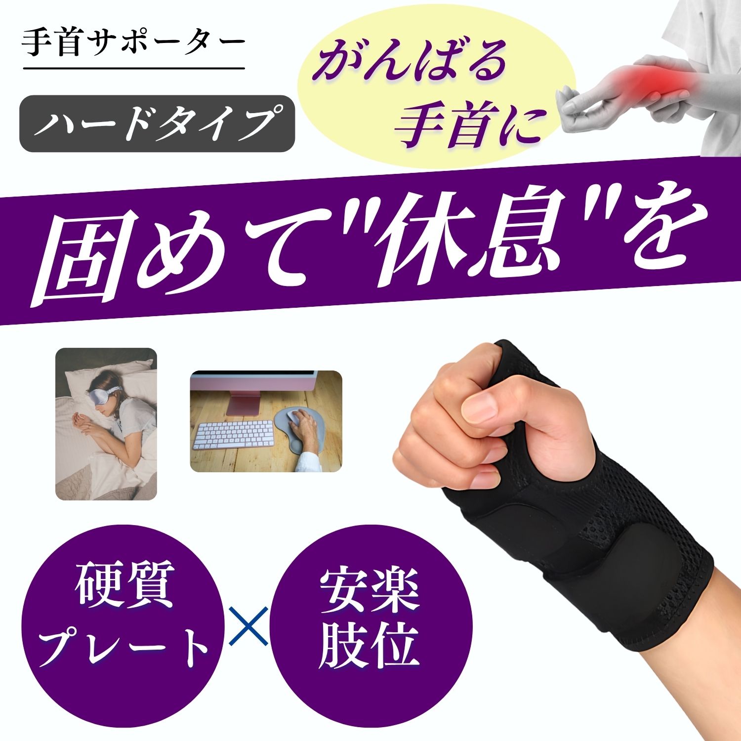 手首 サポーター 固定タイプ【理学療法士企画】腱鞘炎 手根管症候群 捻挫 左右兼用 男女兼用 スポーツ 赤ちゃん 抱っこ 育児 ゴルフ テニス 女性 男性 リラサポ