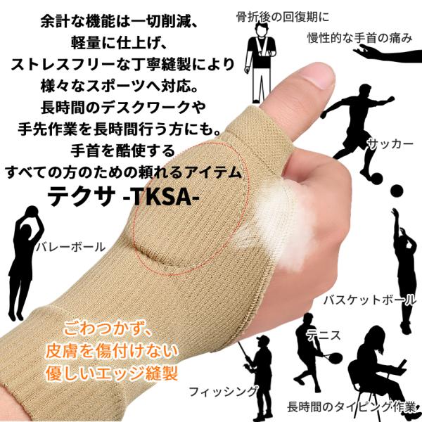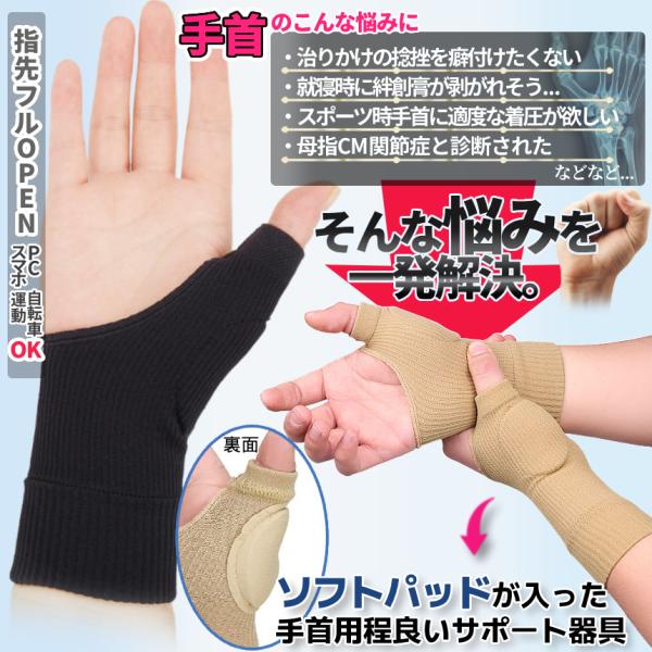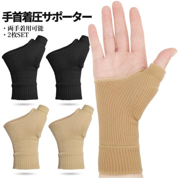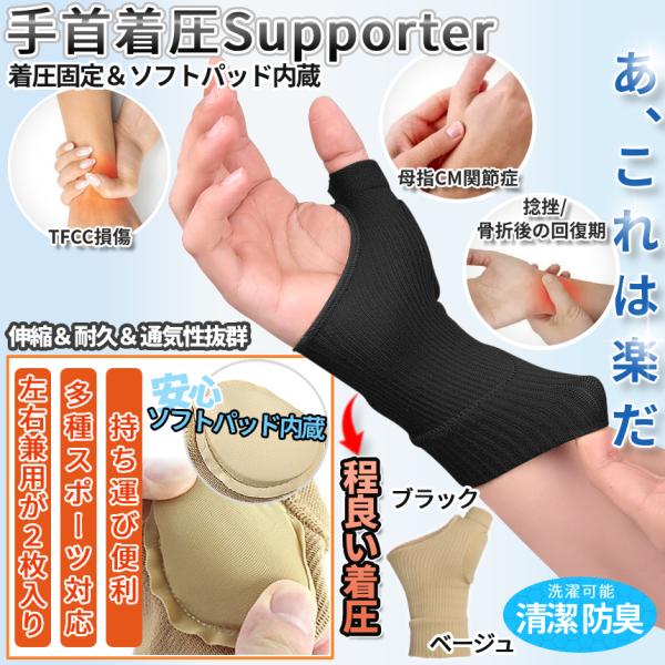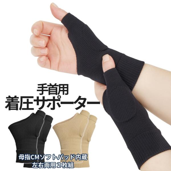 手首 着圧 サポーター 2枚組 男女兼用 左右兼用 黒 ベージュ パッド内蔵 伸縮 腱鞘炎 捻挫 親指 母指CM関節症 バンド 固定 テーピング 絆創膏 剥がれ防止 TKSA