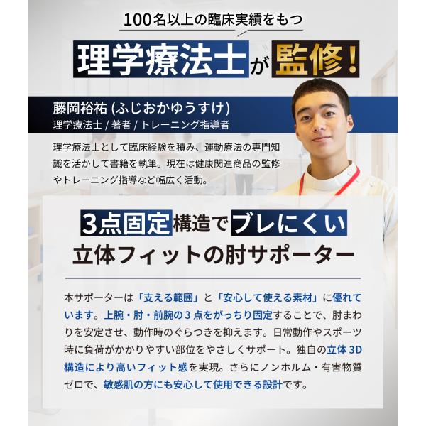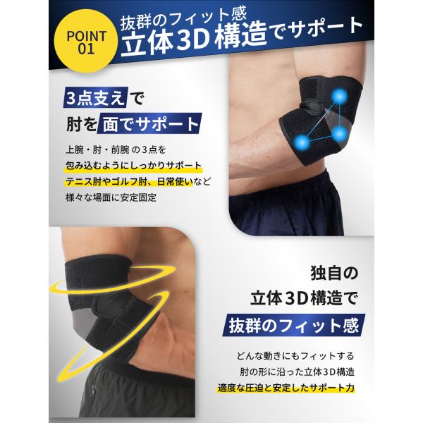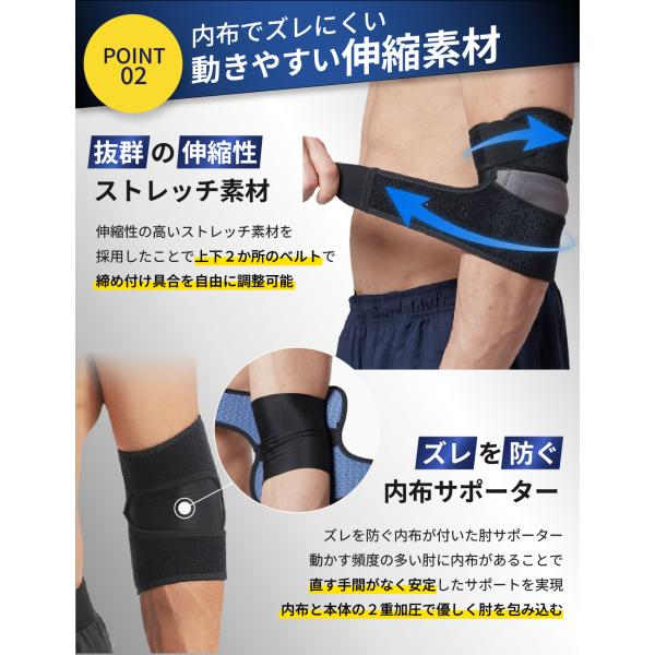 肘サポーター 【理学療法士監修】 エルボーバンド エルボーサポーター テニス肘 ゴルフ肘 野球肘 ベルト付き 男女兼用 ひじ上周囲20-28cm対応 GOSEON