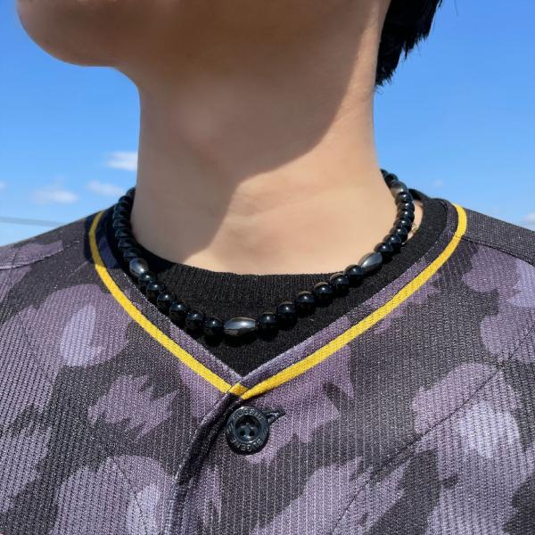 天然石 ネックレス 漆黒デザインがカッコいい!! ヘマタイト ブラックオニキス 磁気 プロスポーツ選手も愛用する jn26