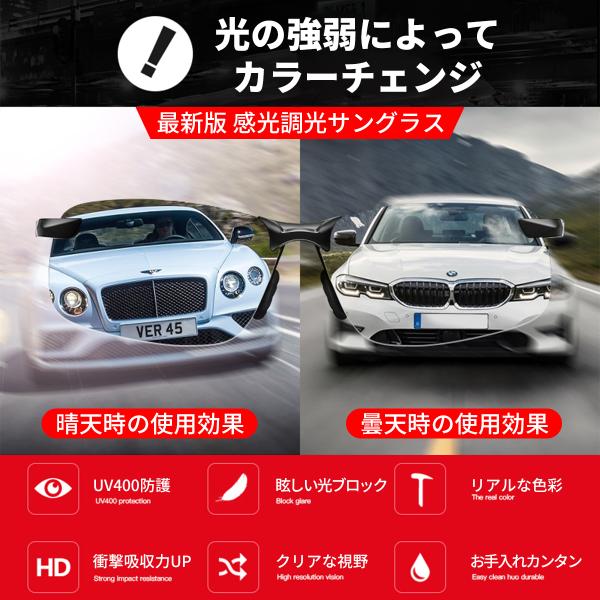 サングラス メンズ レディース 偏光 調光 uvカット カッコイイ スポーツ おしゃれ クリア 透明 薄い色 ドライブ 昼夜 兼用 調光サングラス 偏光サングラス 釣り