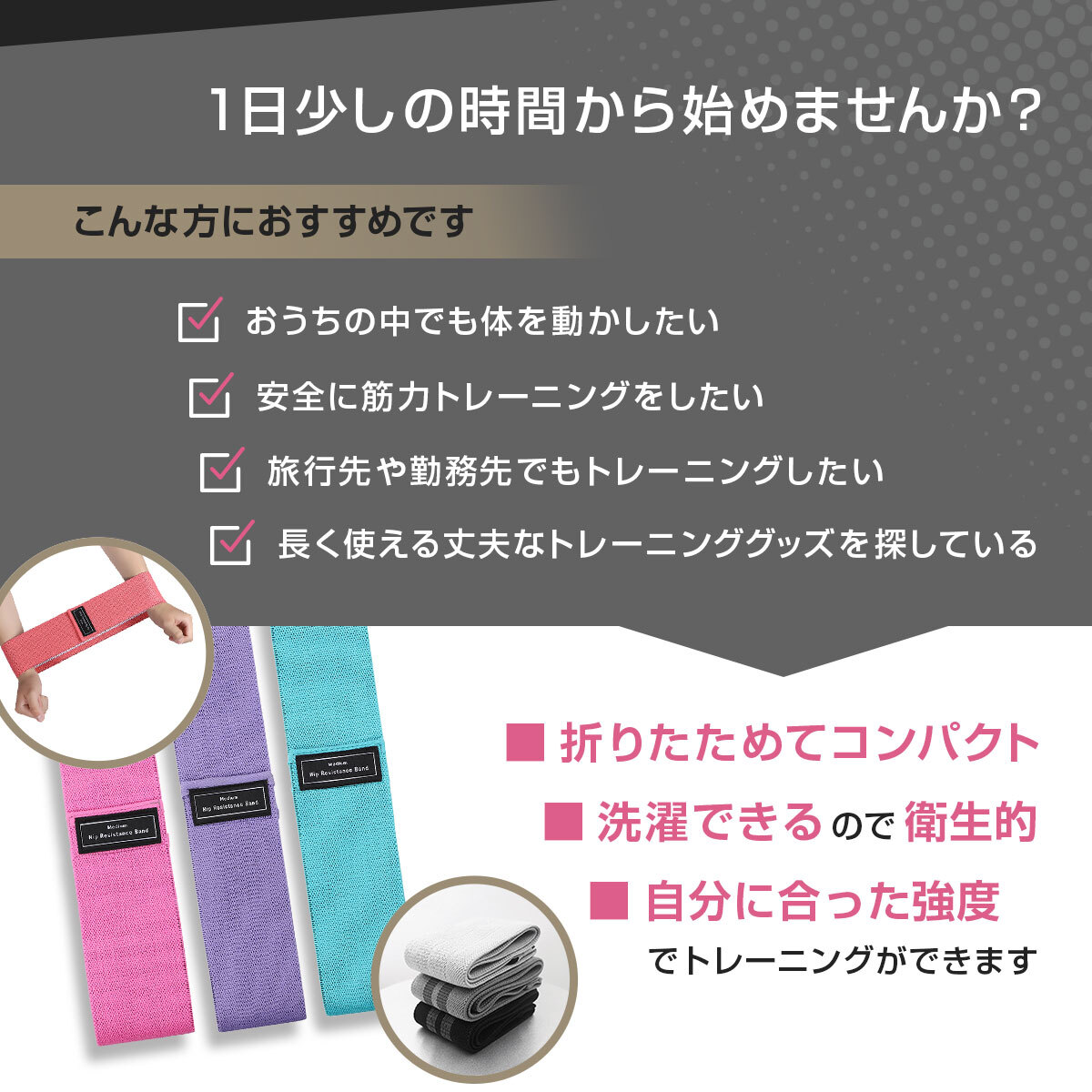 トレーニングバンド エクササイズバンド 布 3本セット フィットネスバンド トレーニングチューブ お尻 下半身 筋トレ ゴムバンド ストレッチ ヒップバンド