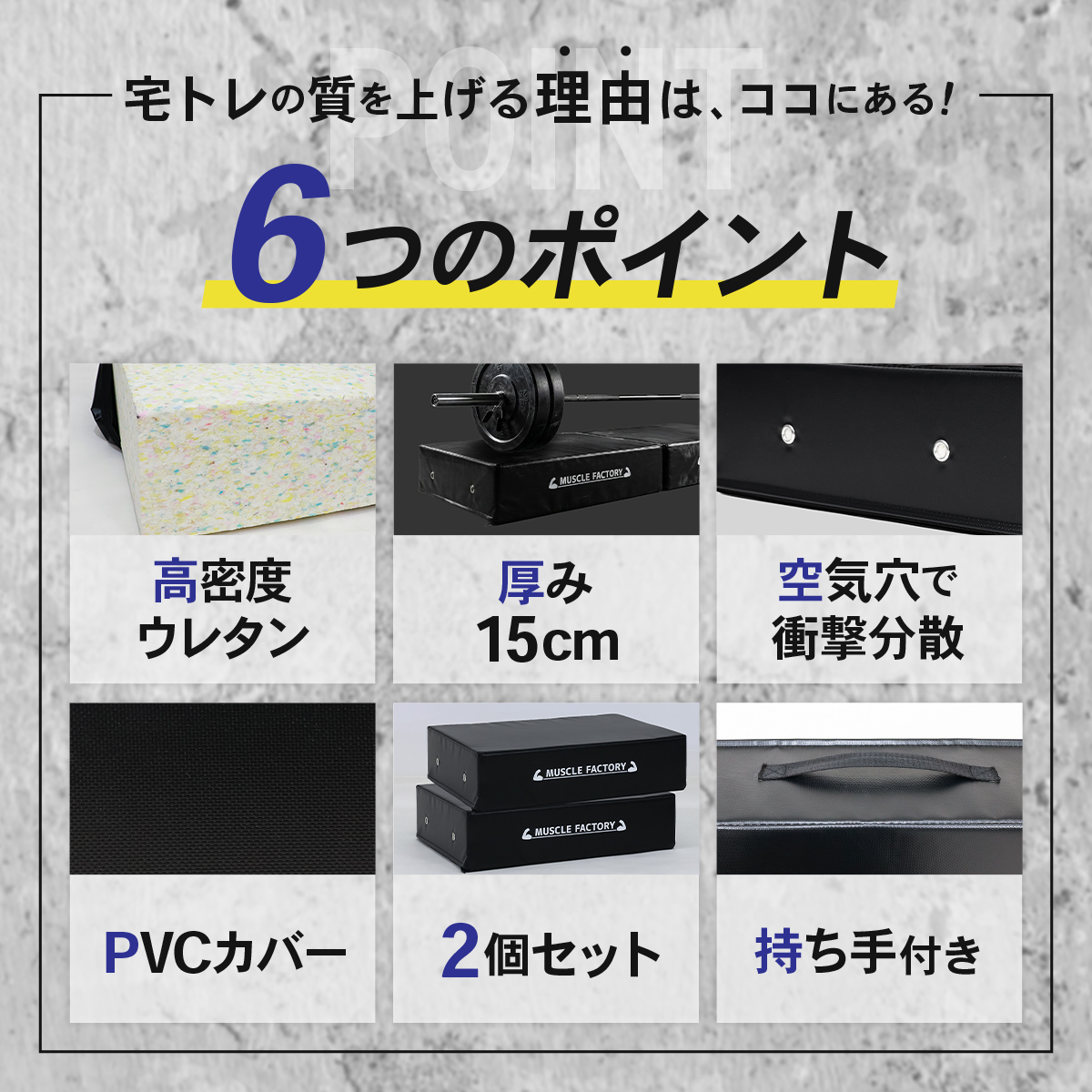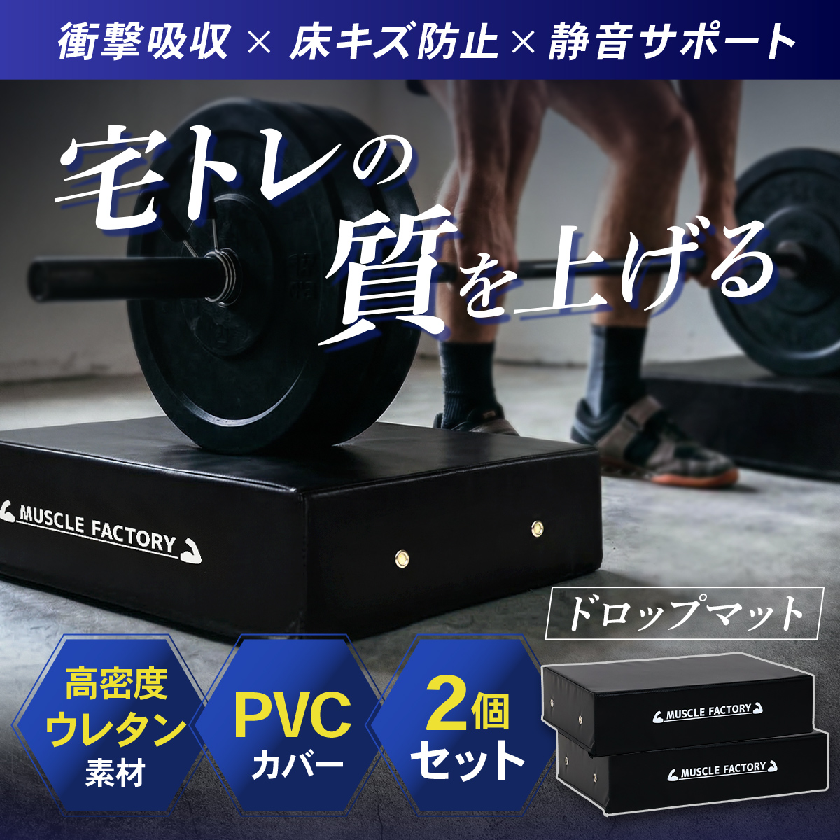 ドロップマット 50×70cm 厚さ15cm ダンベルマット バーベル 防音 衝撃吸収 圧縮ウレタン PVCレザー デッドリフト 床保護 筋トレ トレーニング 2個セット