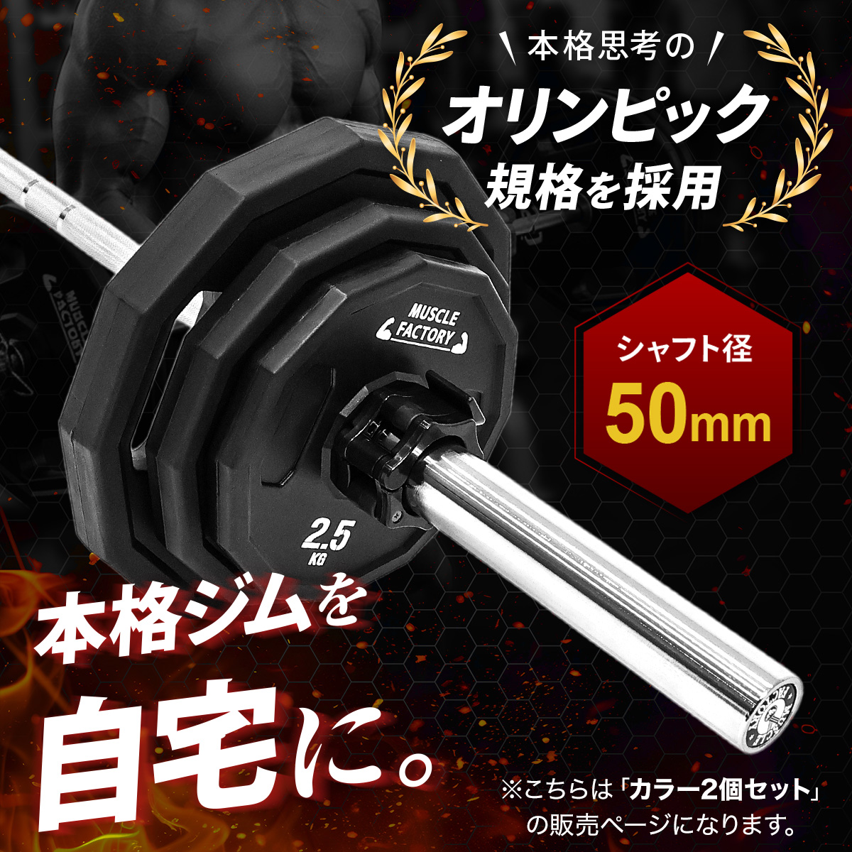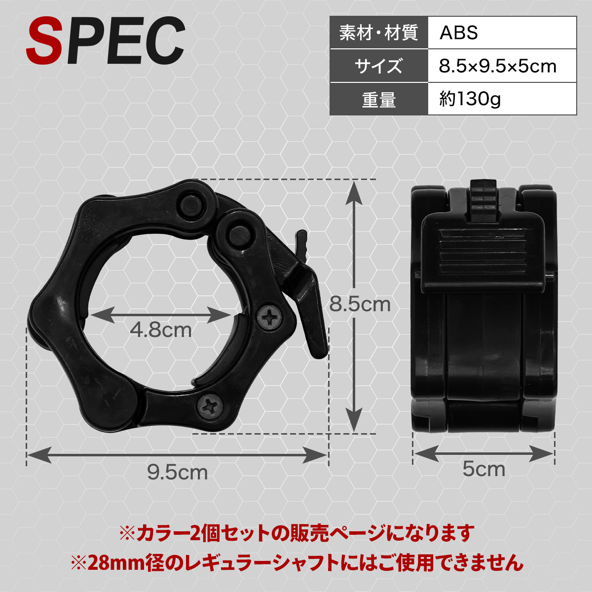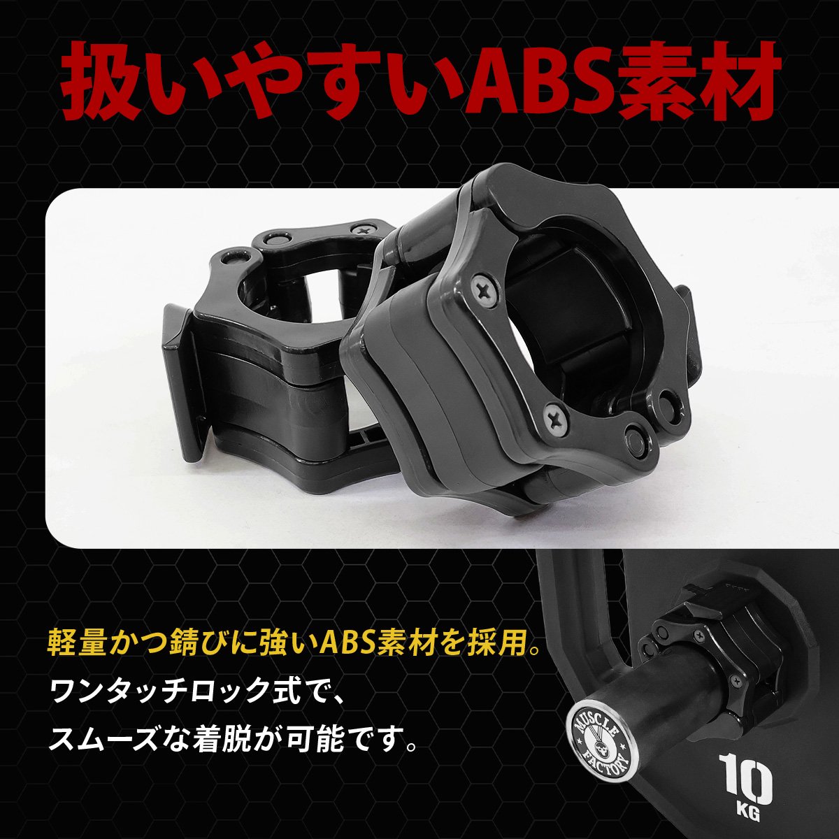バーベルカラー 50mm 2個セット オリンピック シャフト用 ワンタッチロック 着脱簡単 高耐久 軽量 ABS バーベルストッパー 筋トレ