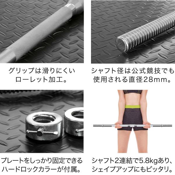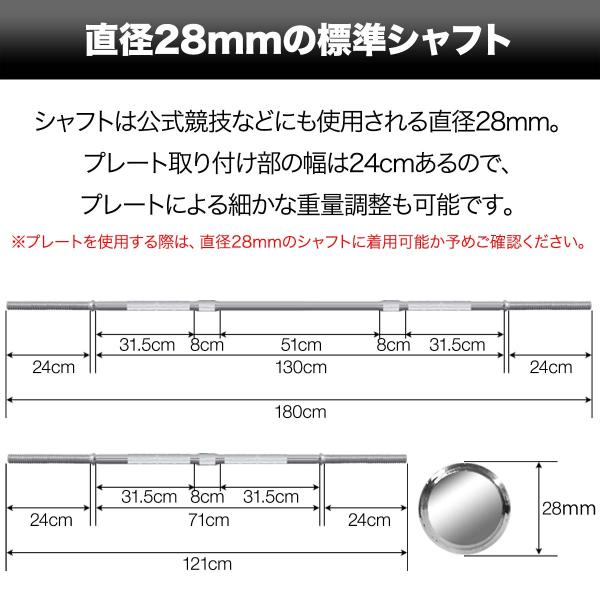 バーベルシャフト バーベル 3分割 長さ180cm ダンベルプレート用 バー カラー付 シャフト径28mm 重量約10kg 連結 送料無料