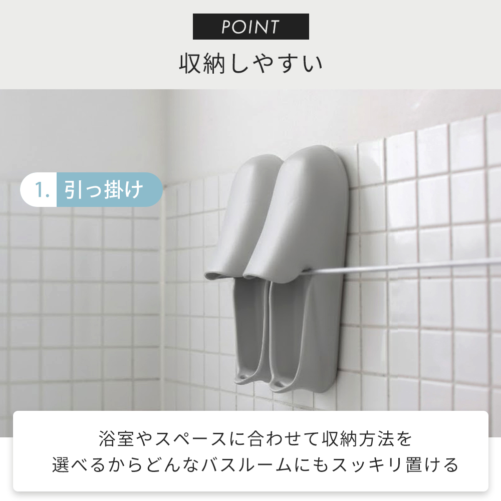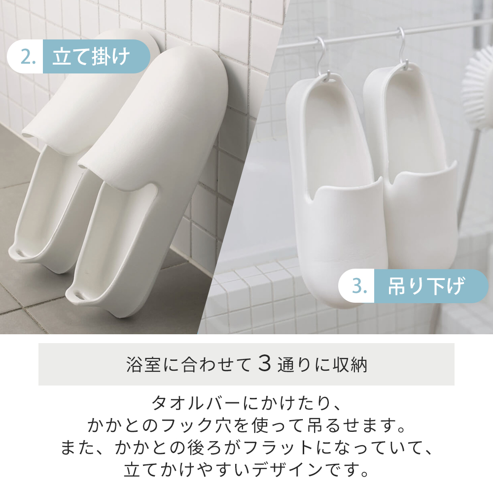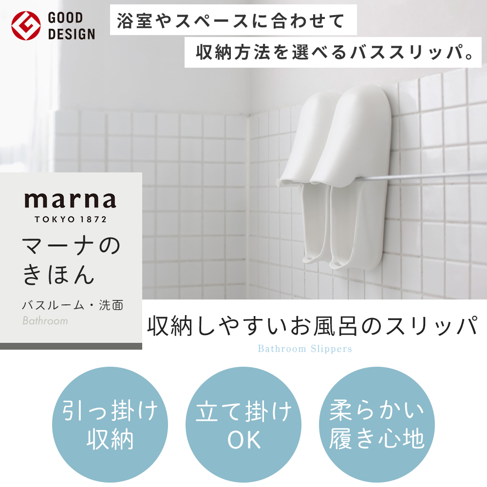 marna マーナ 収納しやすいお風呂のスリッパ バススリッパ シューズ ブーツ グッズ 掃除 マーナのきほん W678 ホワイト グレー 浮かせる