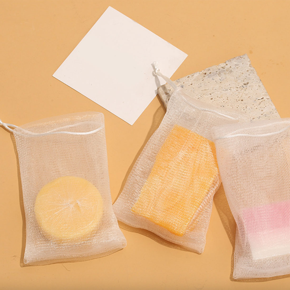 3枚セット 石鹸 泡だてネット 二重ネット 巾着 洗顔ネット ソープ 石鹸ネット 泡 きめ細かい 吊るす 袋 ひも 網 お風呂 洗面所 キッチン 固形石鹸 送料無料