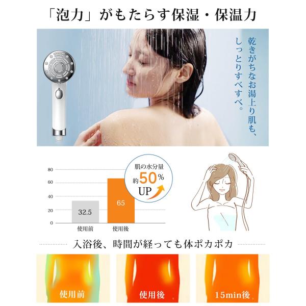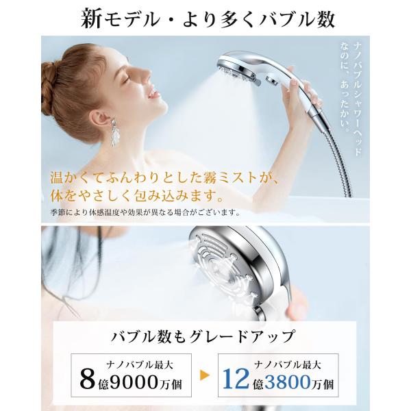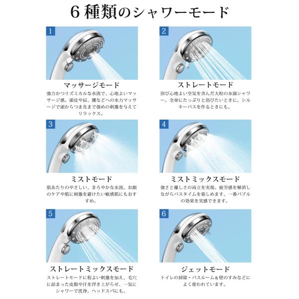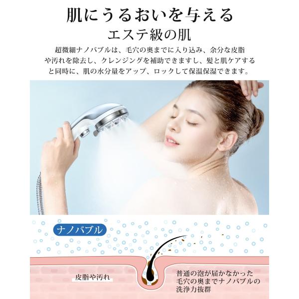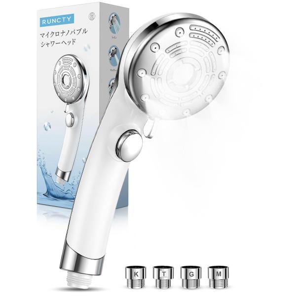 RUNCTY シャワーヘッド マイクロナノバブル【6段階水流・肌奥までに浸透超微細泡・高洗浄とともに超節水】ミストシャワー ヘッド ナノバブル 手元止