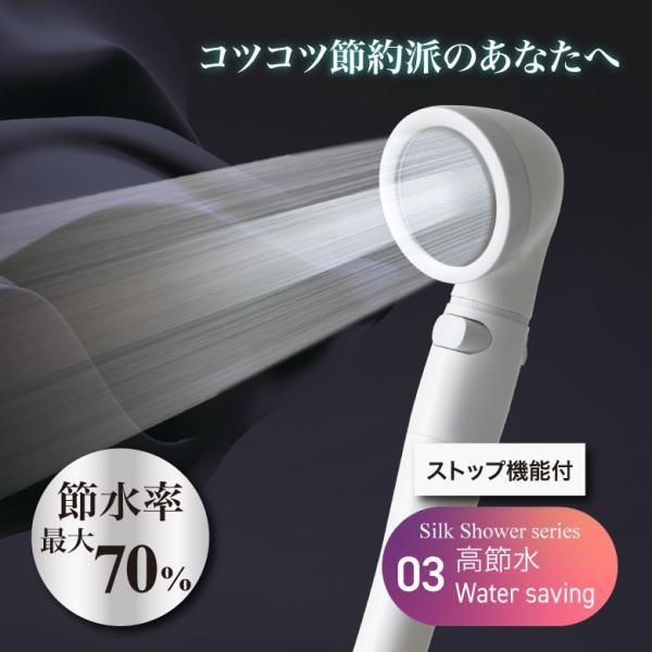 アラミック シャワーヘッド 節水 シルクシャワーシリーズ 高節水 SSS-03 ホワイト 節水率最大70% 止水 水量調節 プレゼント おすすめ