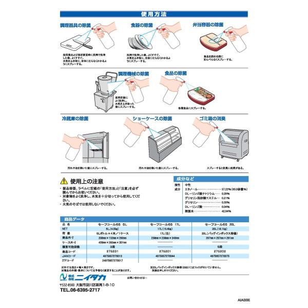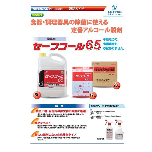 定番アルコール製剤 セーフコール65 17L エタノール65% 食品添加物 食器・調理器具・加工食品の除菌に