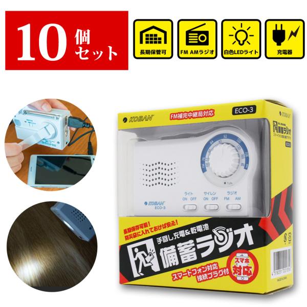 10個セット 未使用品 手回し充電 乾電池 備蓄ラジオ ECO-3 緊急 災害時 防災グッズ AM/FMラジオ 懐中電灯 LEDライト サイレン機能 携帯 スマホ充電 防災セット