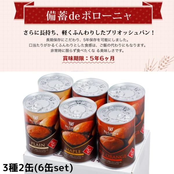 非常食 缶詰 パン 備蓄deボローニャ 6缶 セット 5年 6ヶ月 保存 3種 詰め合わせ プレーン メープル ライ麦 オレンジ ギフト プレゼント おすすめ