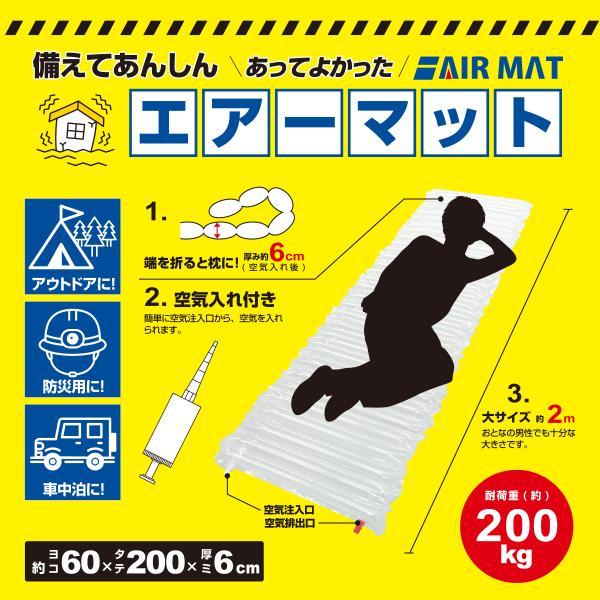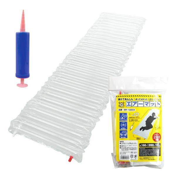 非常時の簡易ベッド BR-10003 防災エアーマット エアーポンプ/空気入れ付 大きめサイズ 約60×200×6cm
