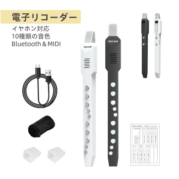 1年保証 電子リコーダー 笛 デジタルリコーダー 内蔵スピーカー ブラック ホワイト Bluetooth MIDI Type-c コンパクト 収納バッグ リコーダー