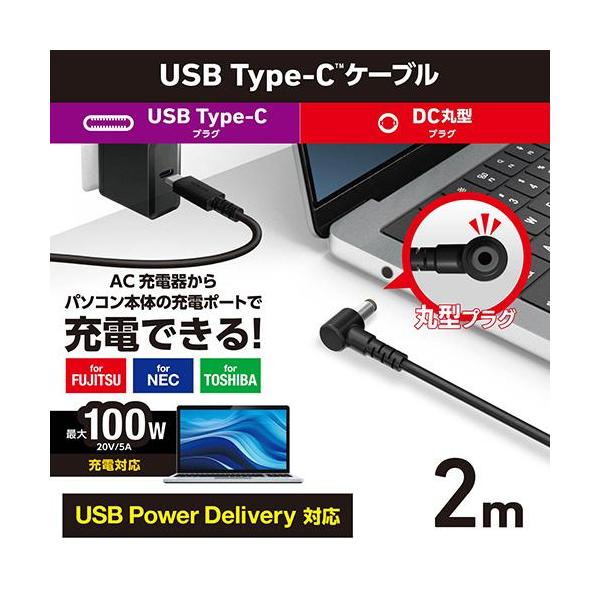 エレコム(ELECOM) DC-PDFE20BK ブラック ノートPC用充電ケーブル USB Type-C/DC5.5mmコネクター/100W 約2m