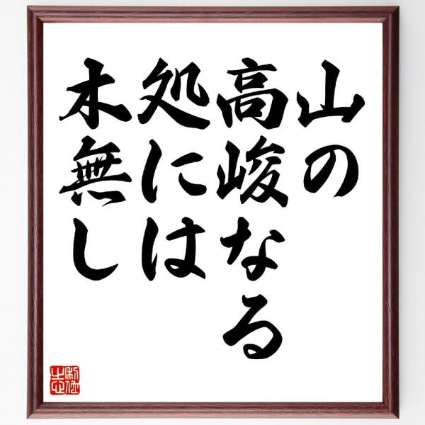 名言「山の高峻なる処には木無し」手書き書道色紙額/受注後の毛筆直筆