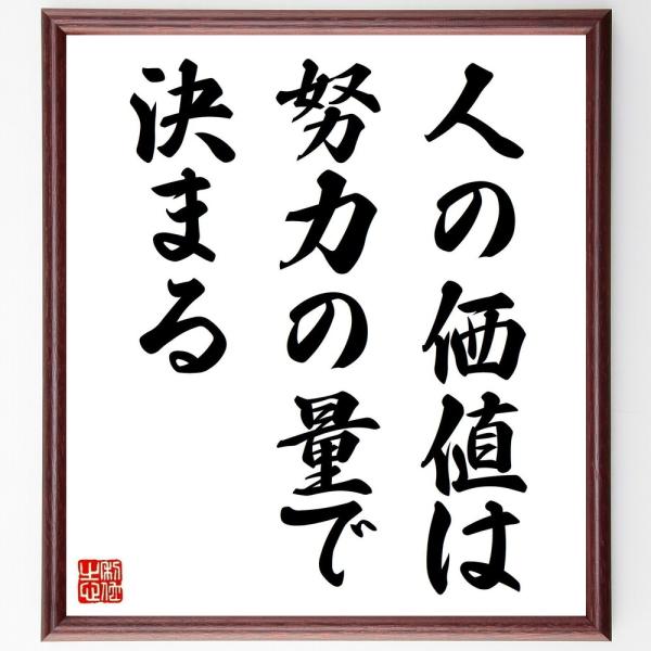 名言「人の価値は努力の量で決まる」手書き書道色紙額/受注後の毛筆直筆