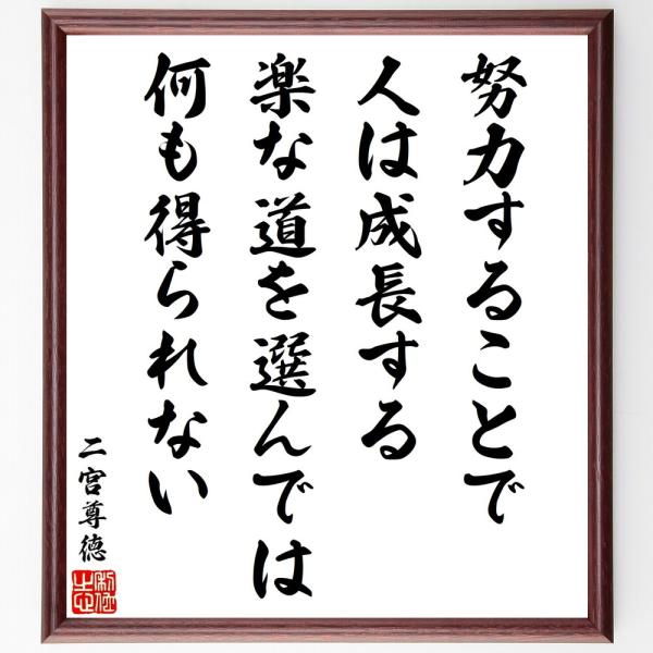 二宮尊徳の名言「努力することで、人は成長する、楽な道を選んでは、何も得られない」手書き書道色紙額/受注後の毛筆直筆