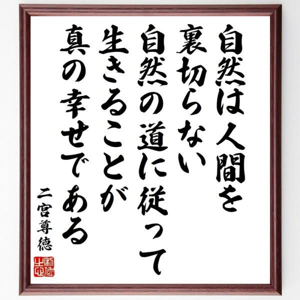 二宮尊徳の名言「自然は人間を裏切らない、自然の道に従って生きることが、真の幸せである」手書き書道色紙額/受注後の毛筆直筆
