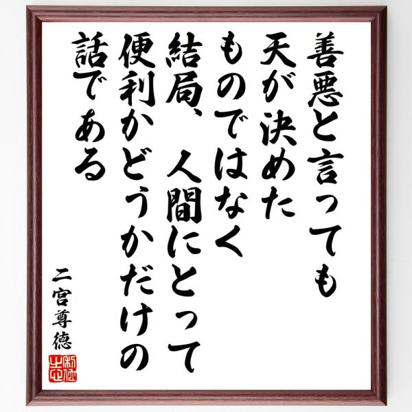 二宮尊徳の名言「善悪と言っても、天が決めたものではなく、結局、人間にとって便利かどうかだけの話である」手書き書道色紙額/受注後の毛筆直筆