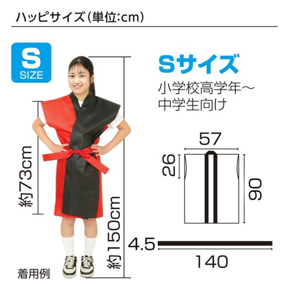ロングハッピ不織布ツートンカラー(帯付) Sサイズ(高学年~中学生用) (1枚までメール便可)全3色 法被 半被 安い 子供用 キッズ ダンス アーテック 小学生 大人