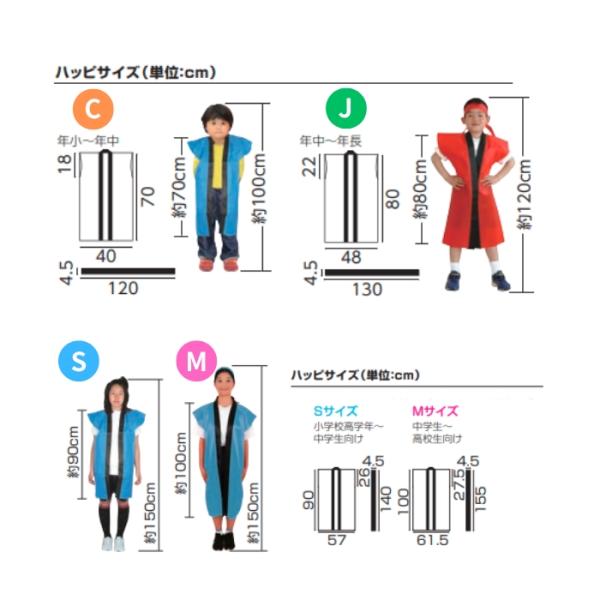 カラー不織布ロングハッピ(ハチマキ付) Mサイズ(中学生〜高校生向け) 15色 法被 ハッピ 安い ダンス アーテック 無地 運動会 体育祭 イベント 中学校 大人