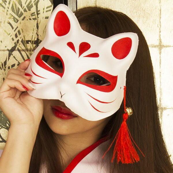 花鳥風月 きつね面 白 半面 お面 狐 ホワイト ハーフマスク