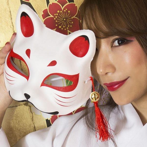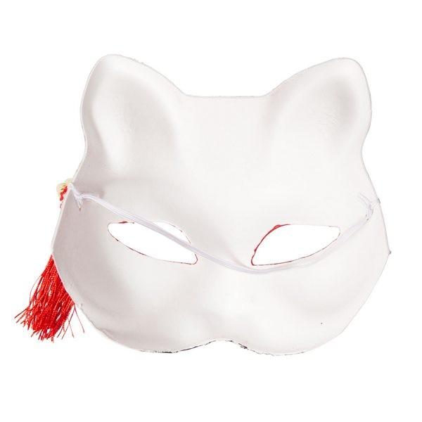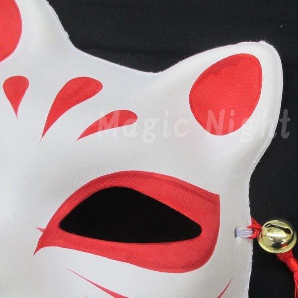 花鳥風月 きつね面 白/黒鼻 半面 お面 狐 ホワイト ハーフマスク