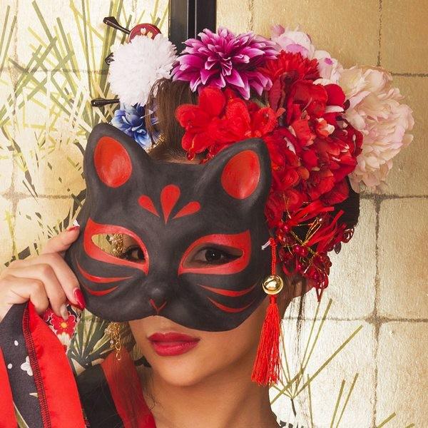 花鳥風月 きつね面 黒 半面 お面 狐 ブラック ハーフマスク
