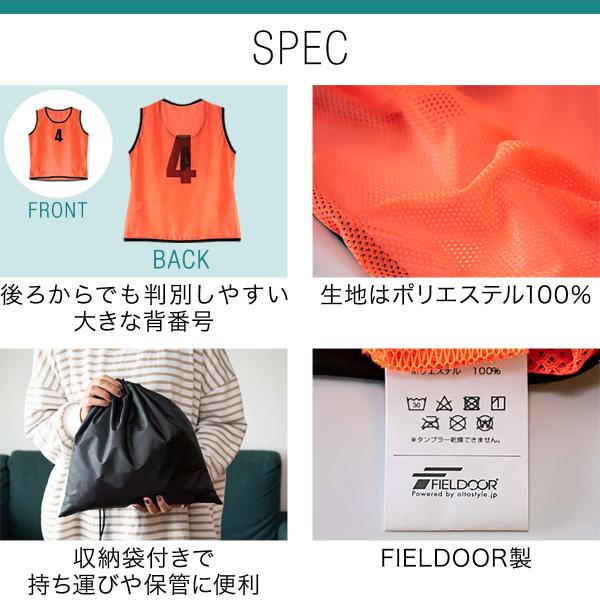 ビブス 12枚セット 番号入り ジュニア用 ゼッケン 1番〜12番 イエロー オレンジ メッシュ素材 ゲームベスト 子供用 FIELDOOR 送料無料