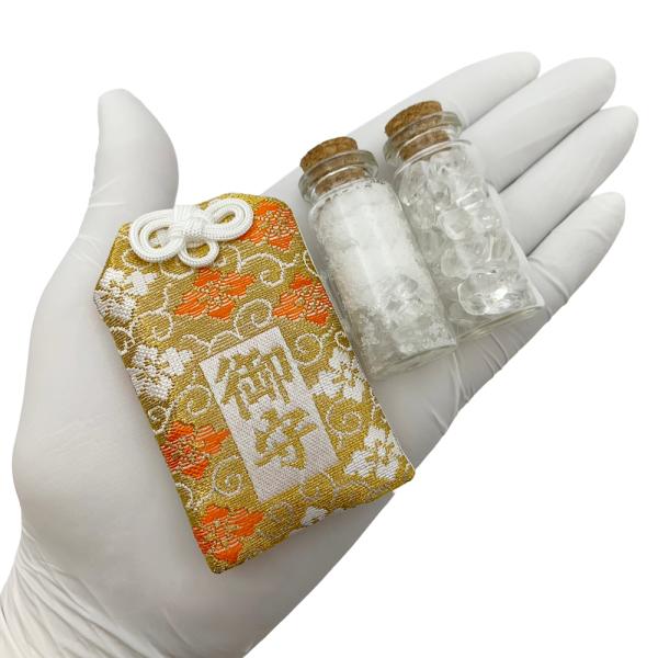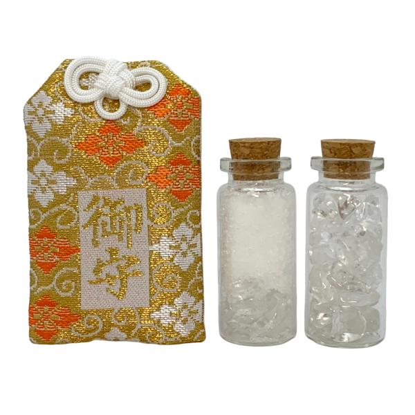 《在庫切れ》EDEN エデン 彩咲ちゃんねる コラボ 神力 封入 水晶入り御守袋 + 塩と水晶瓶 + 水晶瓶 3点セット 浄化の炎 E522