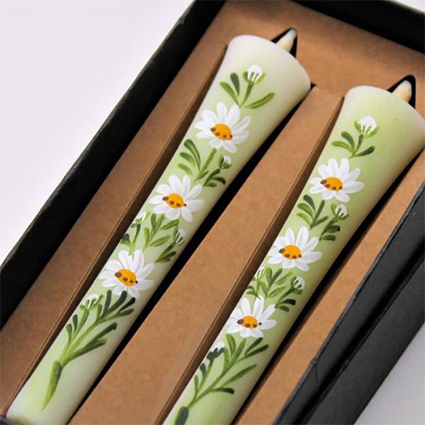 四季の花ろうそく 10cm 2本入【マーガレット】 / 全19種 木春菊 手描き 越後 新潟県 蝋燭 和柄 絵ろうそく 小池ろうそく店 メール便