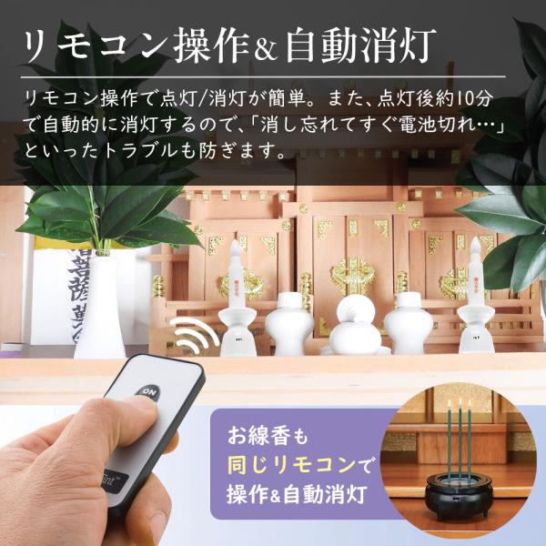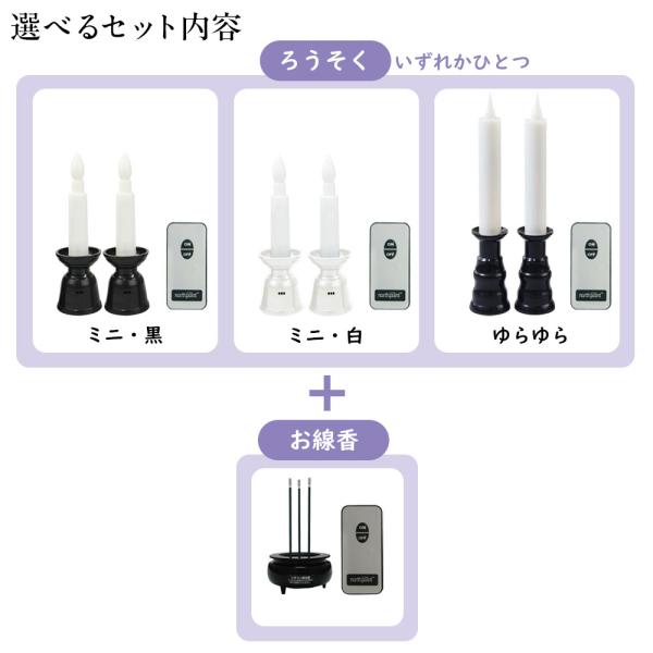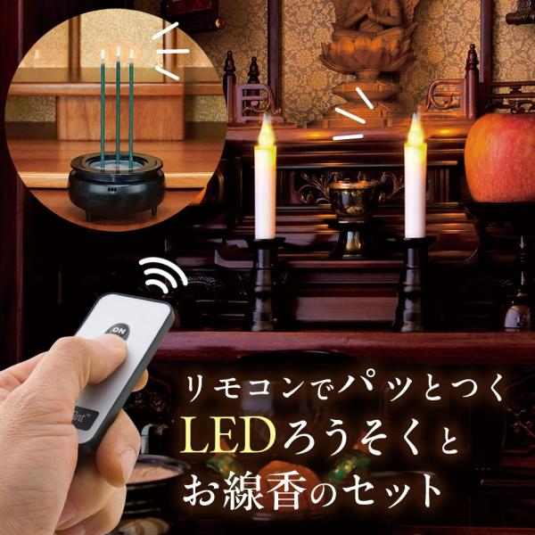 LED ろうそく リモコン式安心LEDローソク+線香セット 黒/白 FIN-1024/FIN-806 | 電池式 リモコン 火を使わない 電気