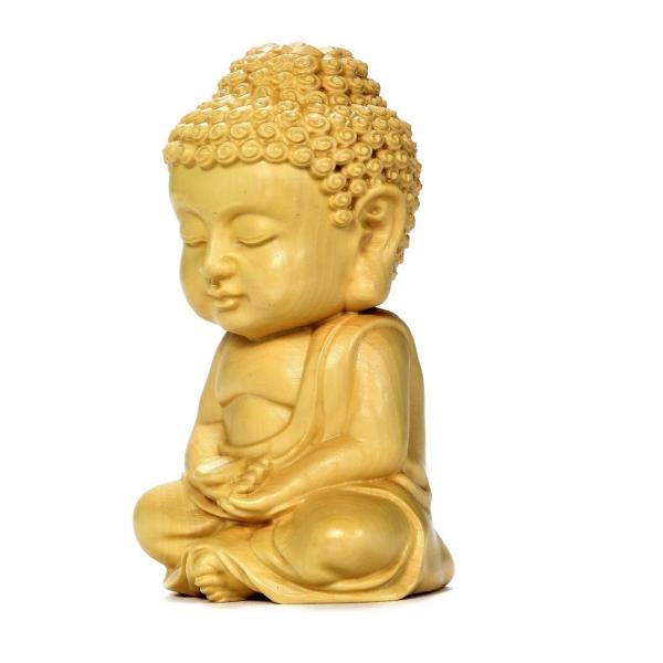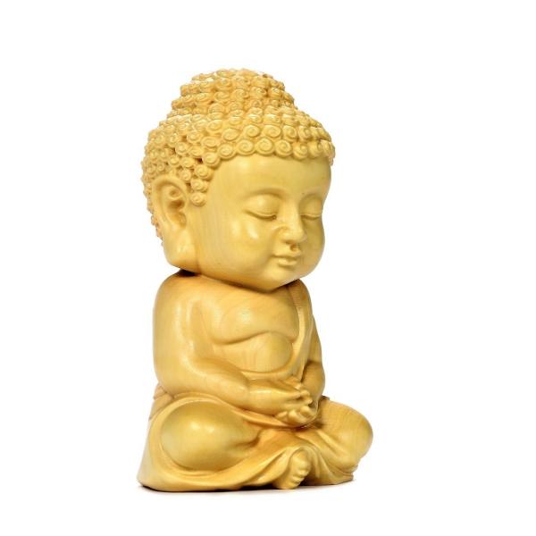 ミニ仏像 かわいい お釈迦様 ブッダ 木彫 ツゲ 置物 オブジェ コンパクト 高さ7cm 巾着ポーチ付き