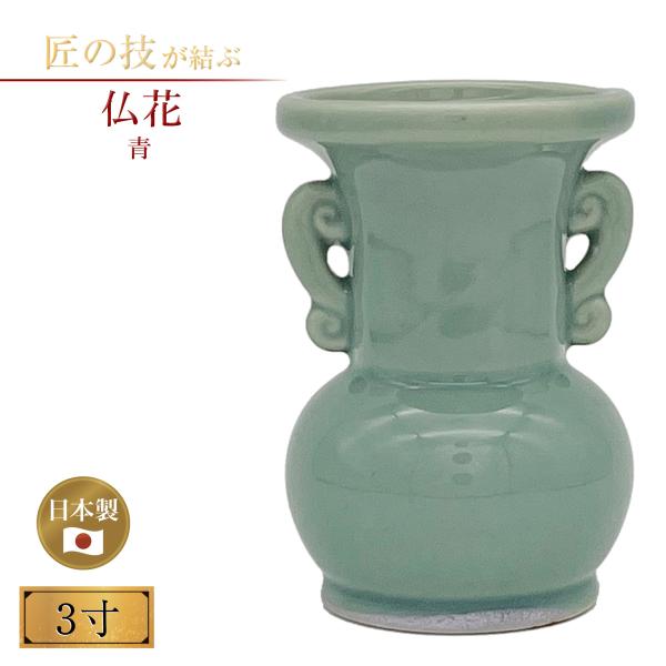 仏花 青 3寸 仏具 仏壇 寺院 寺社仏閣 花立 供物 供養 法要 陶器製 青色 青磁 国産 日本製
