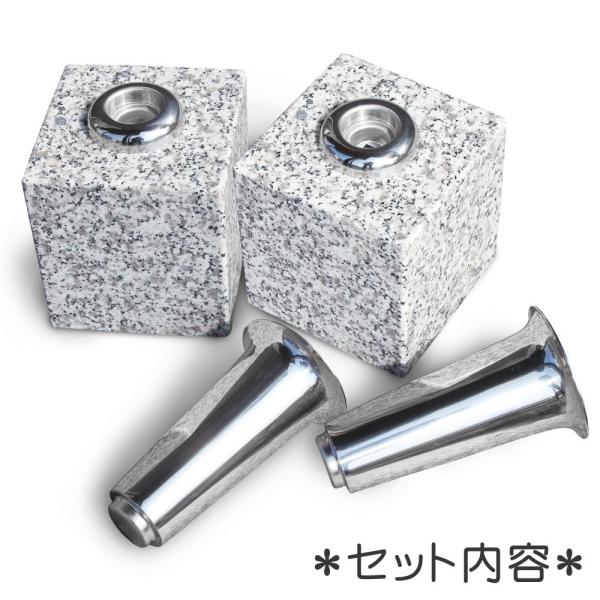 お墓用の花立M01 左右1対セット高級白みかげ石製 ステンレス花筒付 お墓の見栄えが格段アップ 工事不要で置くだけ簡単 B076WQK772