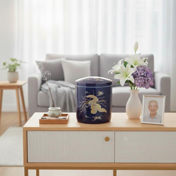 骨壺 サイズ 7寸 ルリ鳳凰(ネジ蓋)単品 葬儀 供養用品 供養 7寸骨壺 おしゃれ骨壺 日本製 納骨 葬儀 手元供養 骨壺大 自宅墓 就活 おしゃれ骨壺 骨壺入れ替え