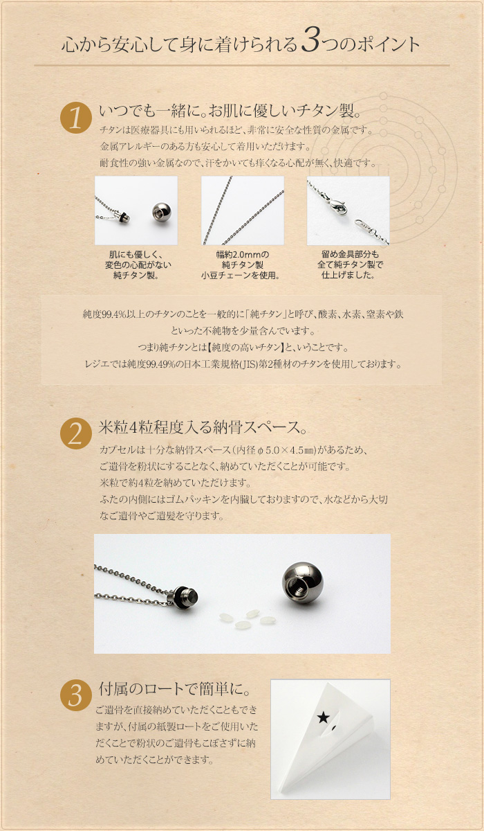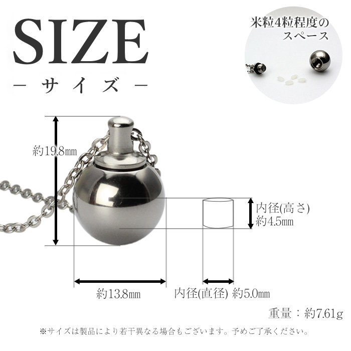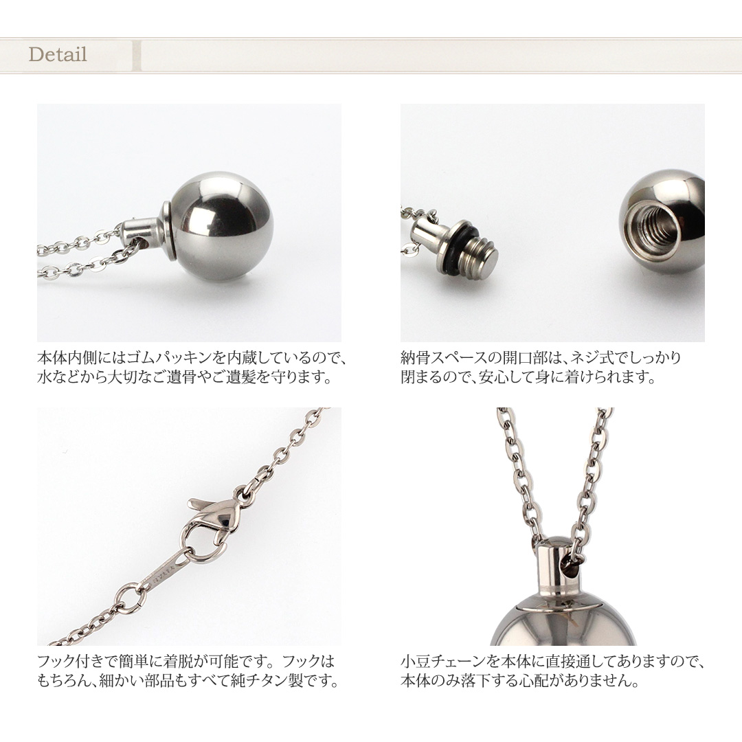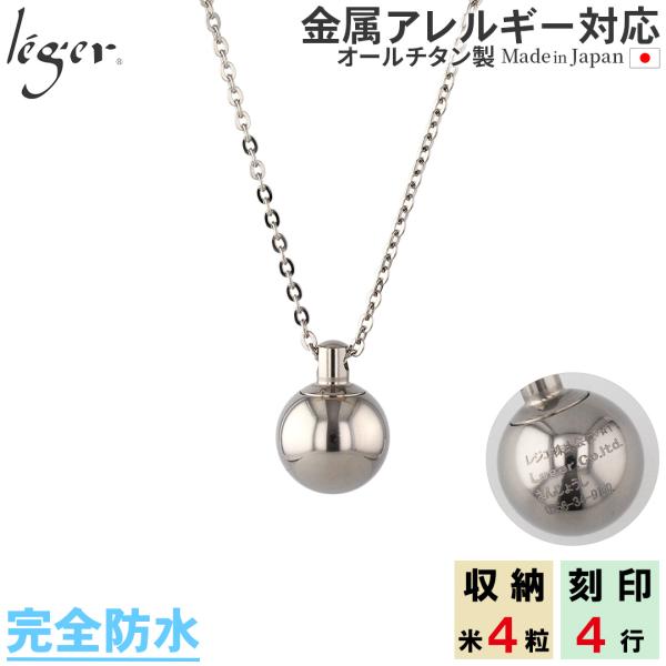 遺骨ペンダント メモリアルペンダント 遺骨カプセル チタン 50cm 刻印 防水 日本製 金属アレルギー対応 人 故人 ペット 球型 PC55-1 レジエ レジェ leger