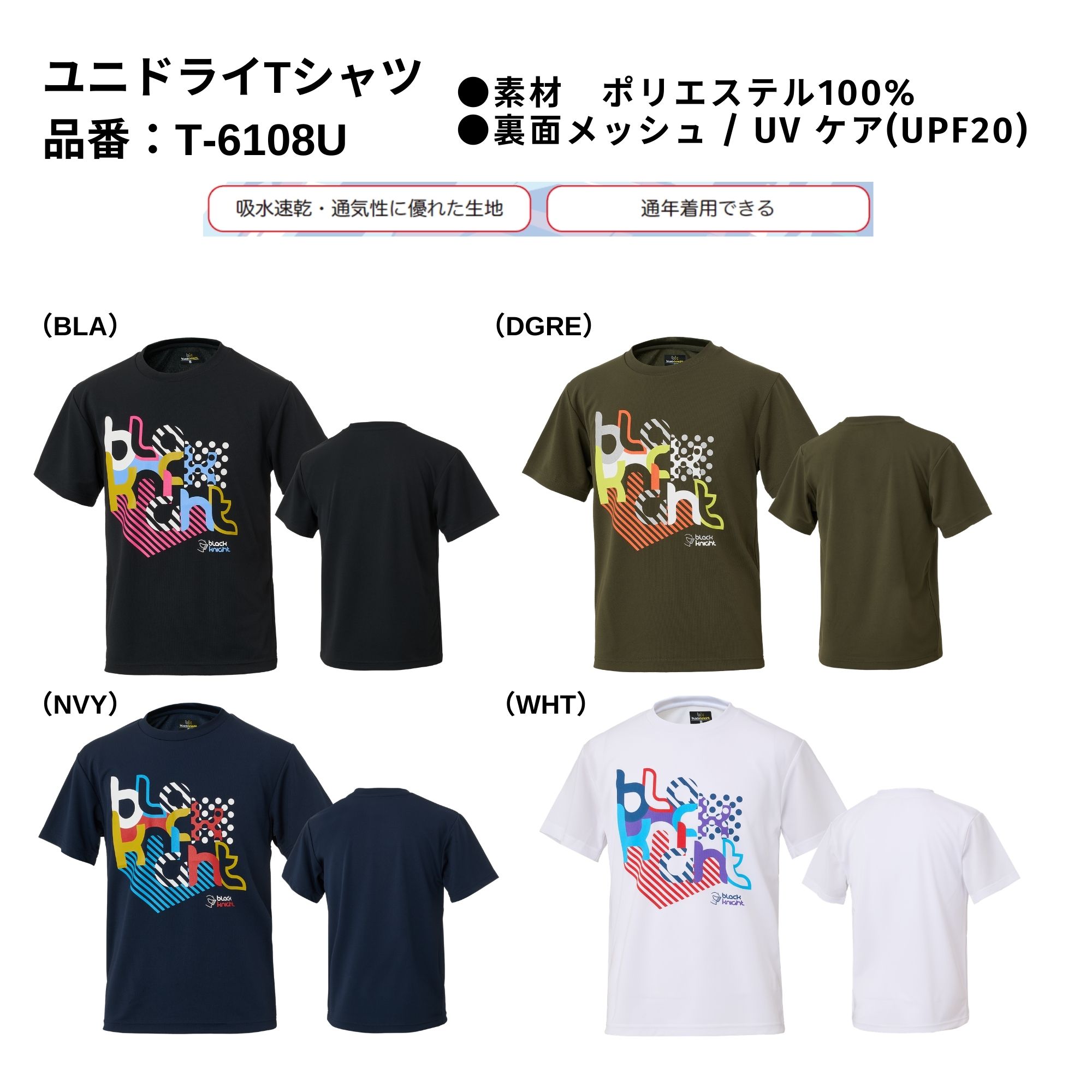 【最短出荷】ブラックナイト black knight ウエア ウェア ユニドライTシャツ T-6108U バドミントン 2026SS