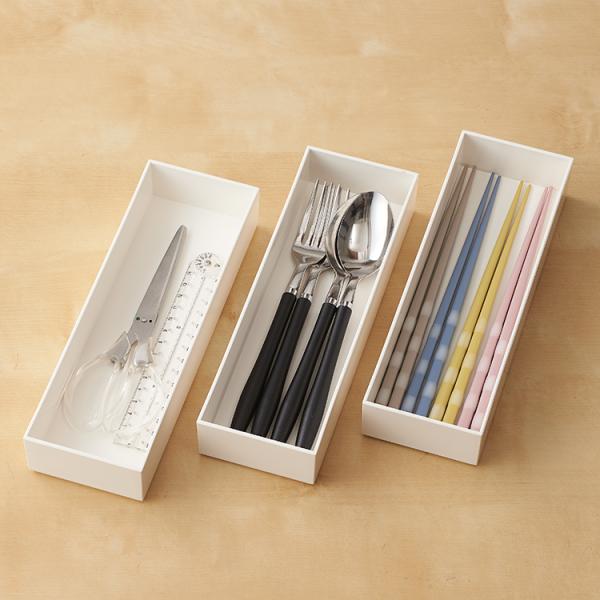 カトラリーケース 引き出し 仕切り おしゃれ 小物入れ デスク トレー ケース 収納 文房具 |Re BOX 8×24cm ナチュラルホワイト KEYUCA(ケユカ)