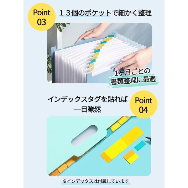 ファイルボックス A4 アコーディオン式 12仕切り 収納ボックス ビジネス書類ケース 大容量 ドキュメントファイル 伸縮タイプ インデックス付き 持ち運び便利