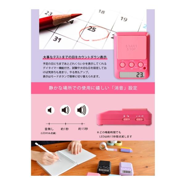 タイマー 学習タイマー ラーニングタイマー T-587 dretec ドリテック 時計 勉強 子供 学生 カウントダウン 消音 アラーム 乾電池式 ピンク T-587PK3 ◆メ