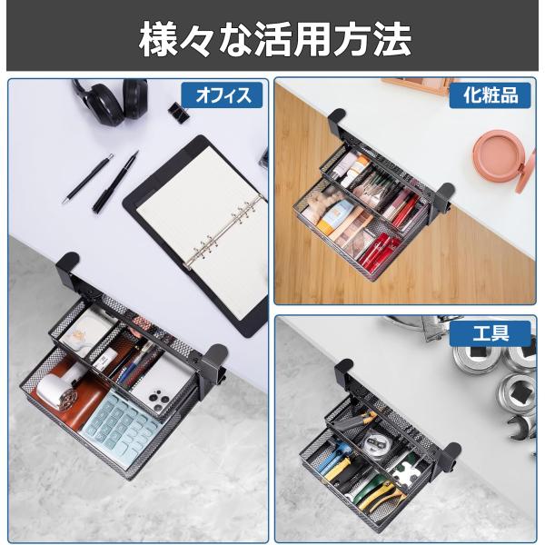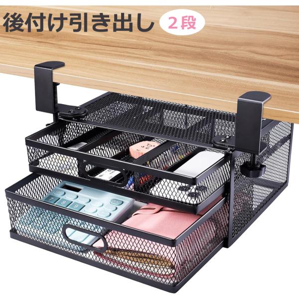 引出し デスク 後付け 2段 丈夫 ブラック 平置き オフィス 机 収納