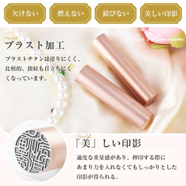 かわいい 女性 ローズゴールド チタン印鑑 実印 認印 銀行印 作成 プレゼント ケース付き 判子 はんこ 10.5mm〜18.0mm【bs ROSEGOLDチタン】