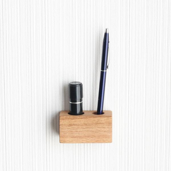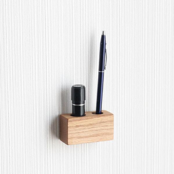 印鑑 ペン スタンド オーク マグネットタイプ シャチハタ 印鑑ホルダー ハンコ立て ペン立て 玄関