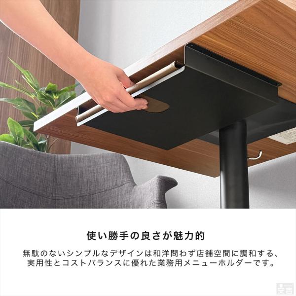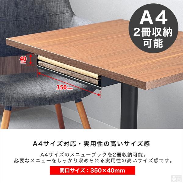 メニューホルダー 業務用 テーブル下 収納 メニュースタンド メニュー立て メニュー入れ メニューラック 机下 テーブル取付 A4対応 伝票ホルダー受け 伝票差し