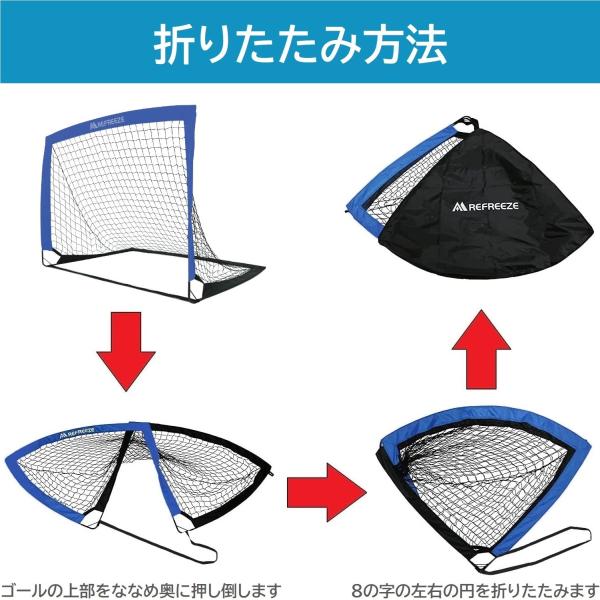 REFREEZE リフリーズ 124×94cm 折りたたみ サッカーゴール ブルー 2個セット 収納バッグ付き 室内 屋外兼用 ポータブル ポップアップ サッカー フットサル