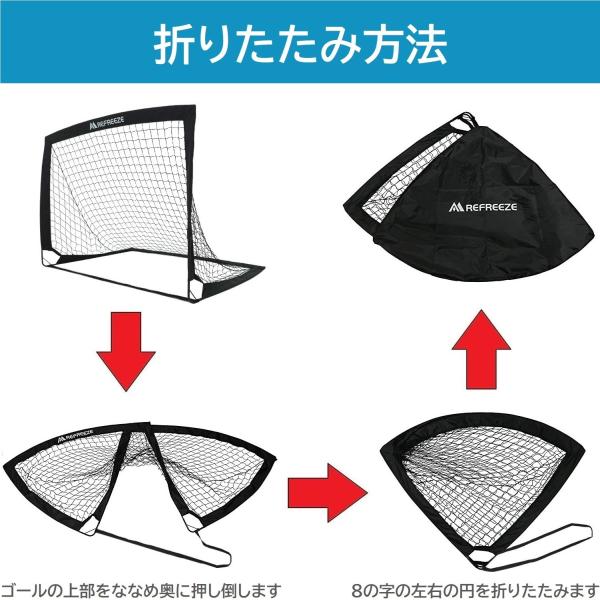 REFREEZE リフリーズ 124×94cm 折りたたみ サッカーゴール ブラック 2個セット 収納バッグ付き 室内 屋外兼用 ポータブル ポップアップ サッカー フットサル